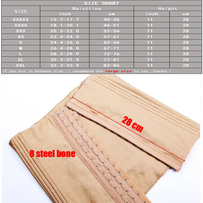 Item Feature: 3 rows hook & eye closure,high waist 28 cm,8 spiral steel bones