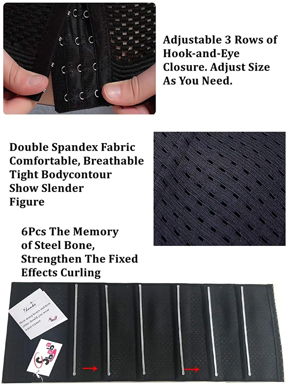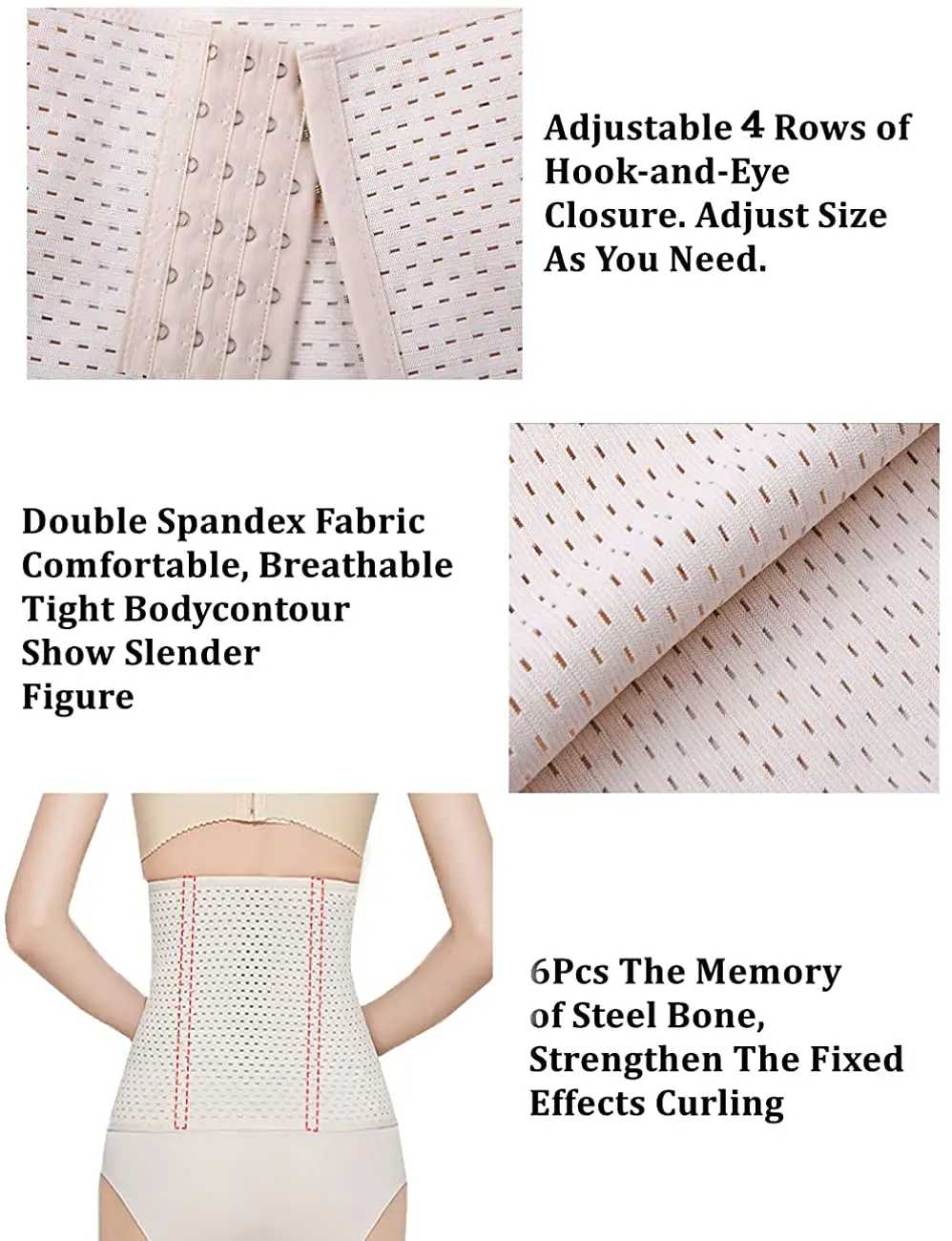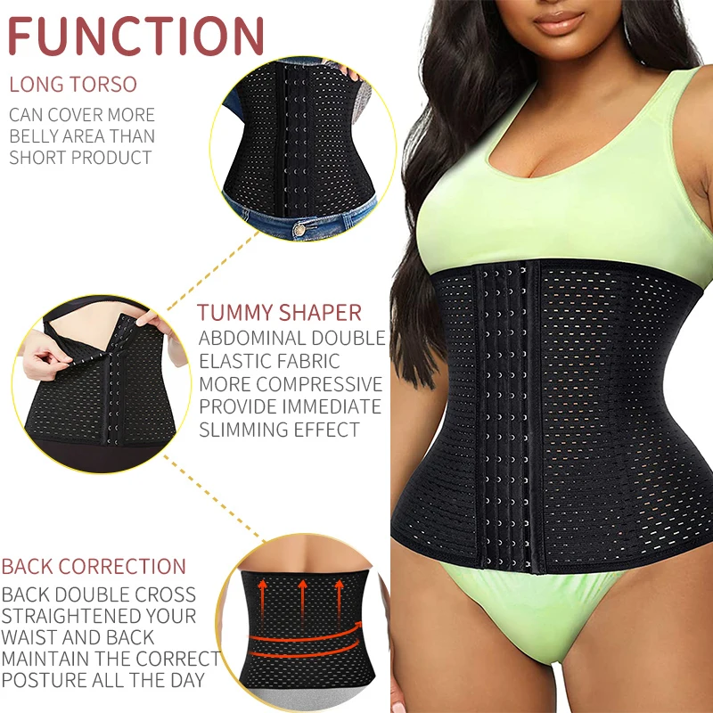 MULTIFUNCTIONAL WAIST TRAINER: With four pieces built-in steel bones to ensure the body shape is kept in in best posture, not only effectively control & flattens the stomach, but also provides enough support for back pain relief and correct your posture and it will not easy rolled.3 rows of hooks eyes design providing different level of compression of tummy control, allowing you to adjust size as necessary.