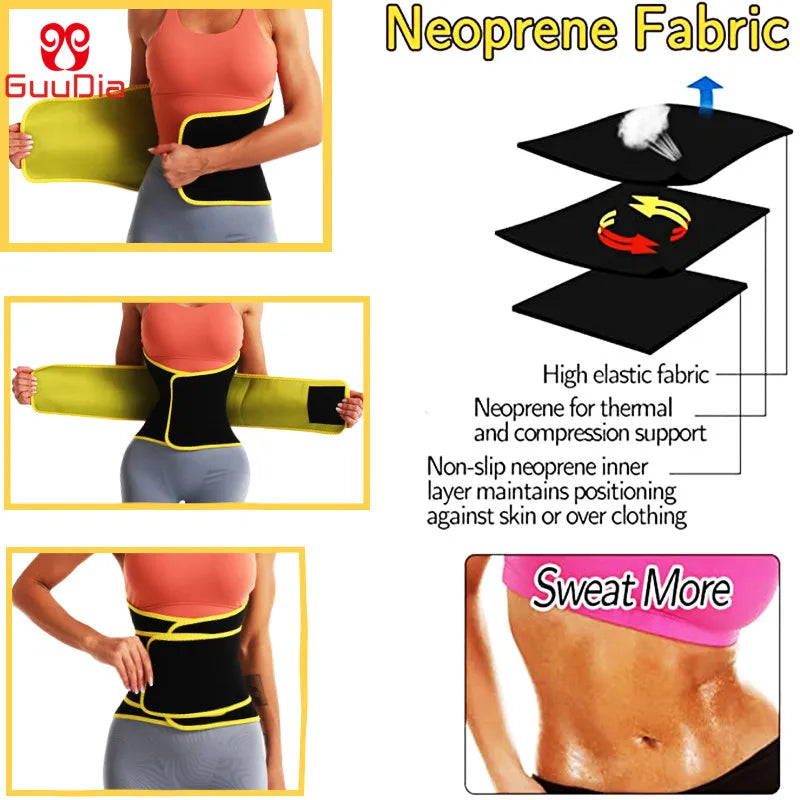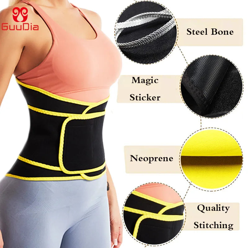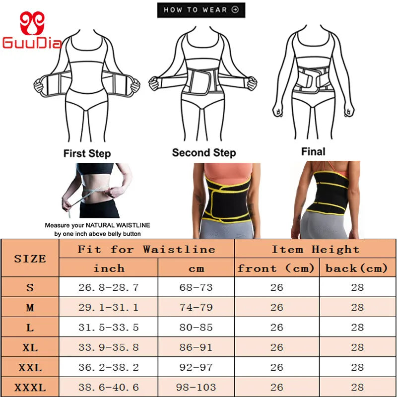 MATERIAL: 75% neoprene+15% spandex,  steel bones, Magic sticker closure (double belts),  Product torso: 29cm back, 25cm front.  dashing fashion line trimmer. (GUUDIA Women Waist Trainer Sauna Sweat Belts Tummy Control Girdle Body Shaper Belt  Weight Loss Corset Waist Trimmer Shapewear).