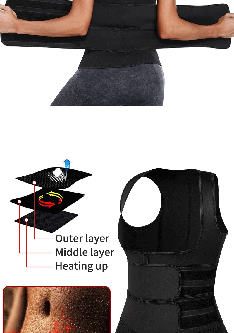 4. The waist trainer top with magic sticker and ziper design, can adjustable freely by yourselft.