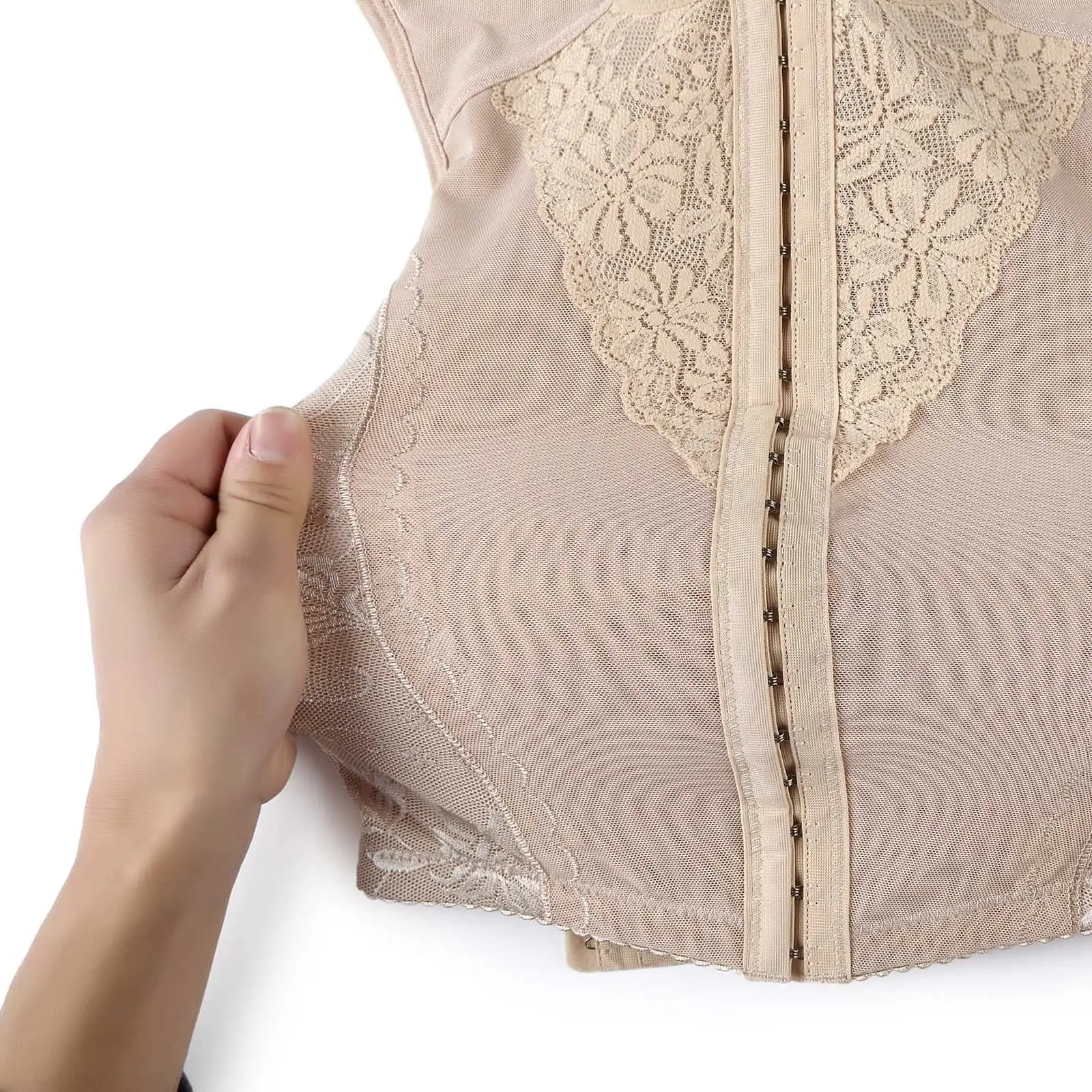 Women's Waist Trainer Corset with 6 Rows Hooks Lace Ventilate Vest